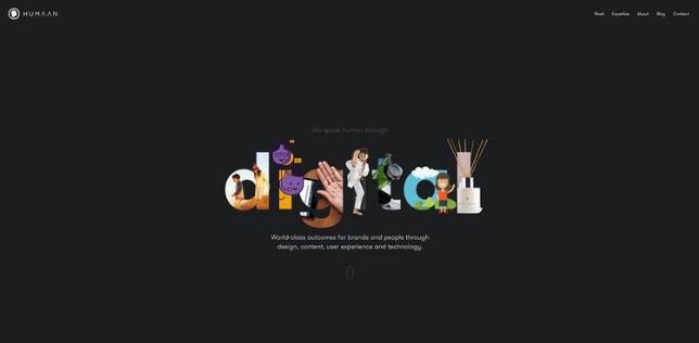 网站采用了大量强调的衬线标语,反映了充满活力和集中的背景图像。